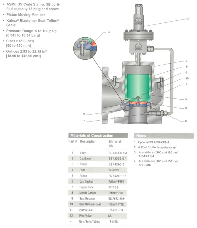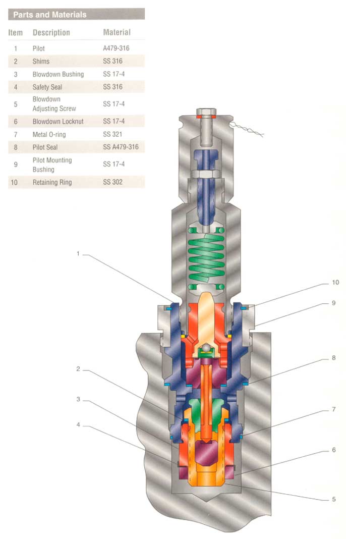Features: The Series 400 is a no-flow, modulating action POPRV design suitable for gas, liquid and two-phase applications. The Series 400 represents the very best state-of-the-art technology providing safety relief valve performance not possible from direct spring PRV’s.