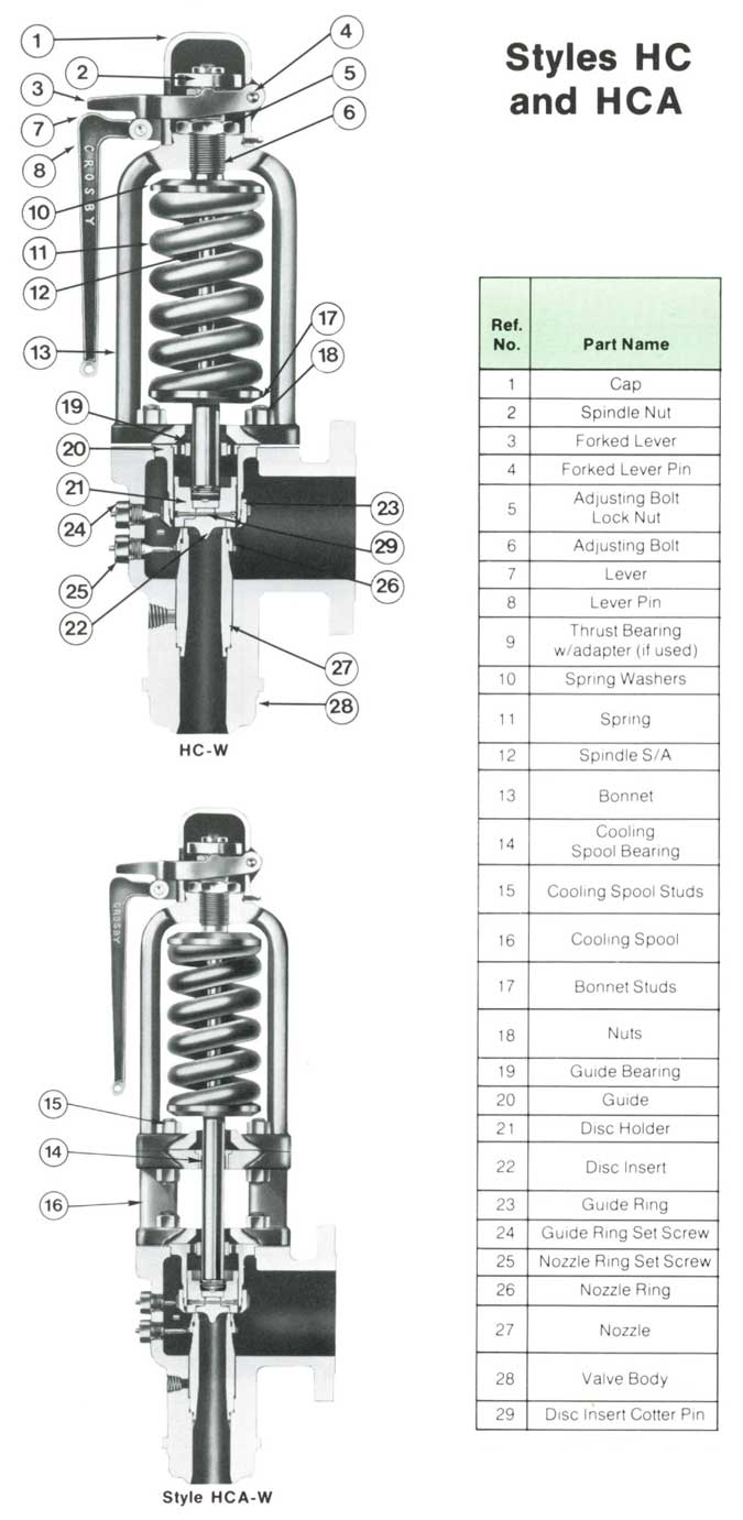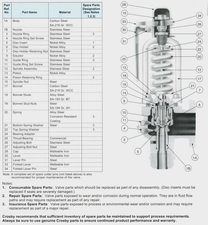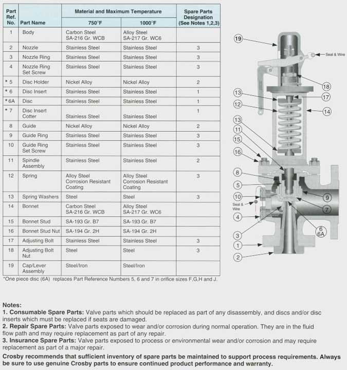 Crosby’s all purpose pressure relief valve line with a wide variety of options. Ask for Catalog No. 310. Specifications:
